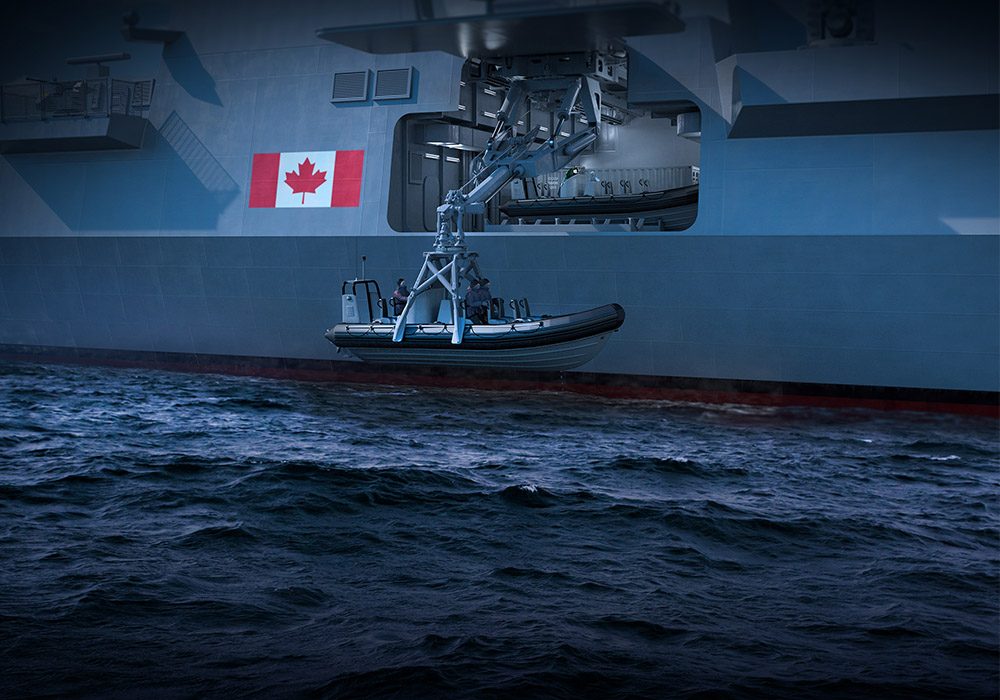 Our Peterborough facility is a specialised hub that has provided expert naval handling solutions for over three decades. From its wide range of offerings, there is an opportunity for us to supply the Variable Depth Sonar Handling System for the Canadian Surface Combatant. This handling system will allow launch, recovery and stowage of Ultra Electronics Canada’s Towed Low Frequency Active Sonar (TLFAS), which will be used in the detection and tracking of stealthy submarines in challenging ocean environments. The lightweight automated handling system requires minimal manning and is capable of launching and recovering the sonar in high sea states.