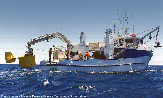 A lightweight, automated handling system for safe launch, recovery and stowage of active passive sonar in high sea states. Selected for service by Singapore and Dutch navies.