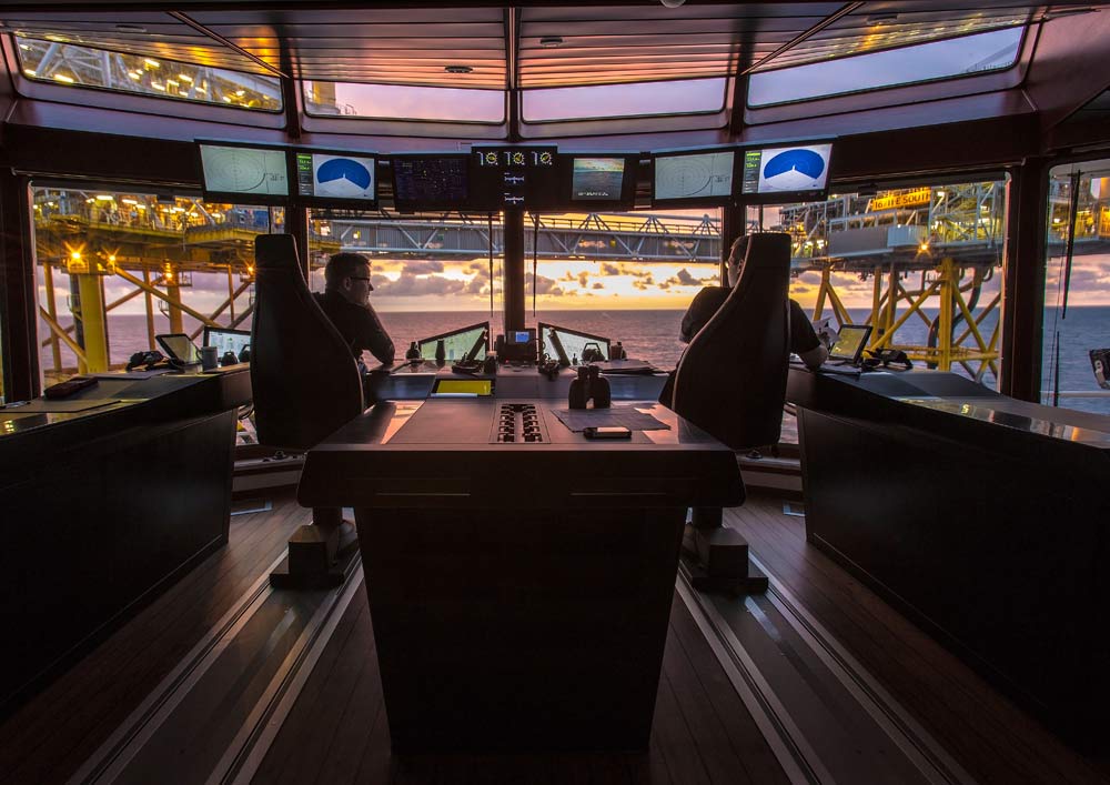 Practice manoeuvring around an oil platform in all types of sea conditions. Learn from realistic situations using operator stations arranged as on the vessel.