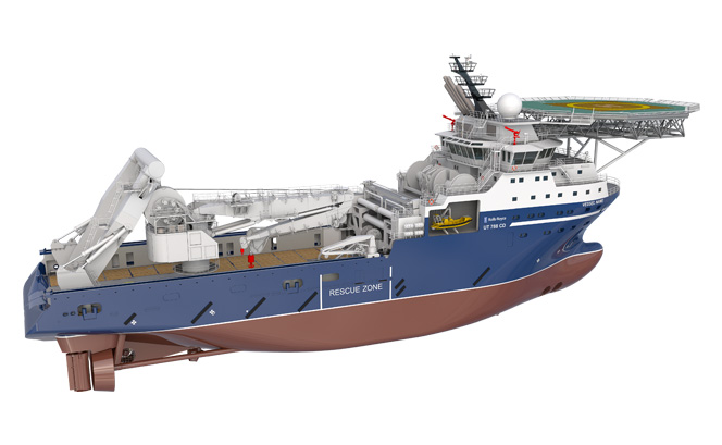 UT 788 CD is a large multi-purpose subsea construction and anchor-handling vessel with a bollard pull of 300 tonnes. The combined diesel mechanic/ diesel electric machinery (hybrid) secures a flexible and fuel-efficient operation for the vessel. The vessel is prepared for installation of A-frame or heave compensated offshore crane and can be delivered with a moonpool.